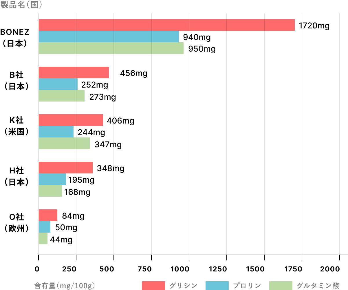 ボーンブロス製品の栄養成分含有量比較(2025年6月当社調べ)